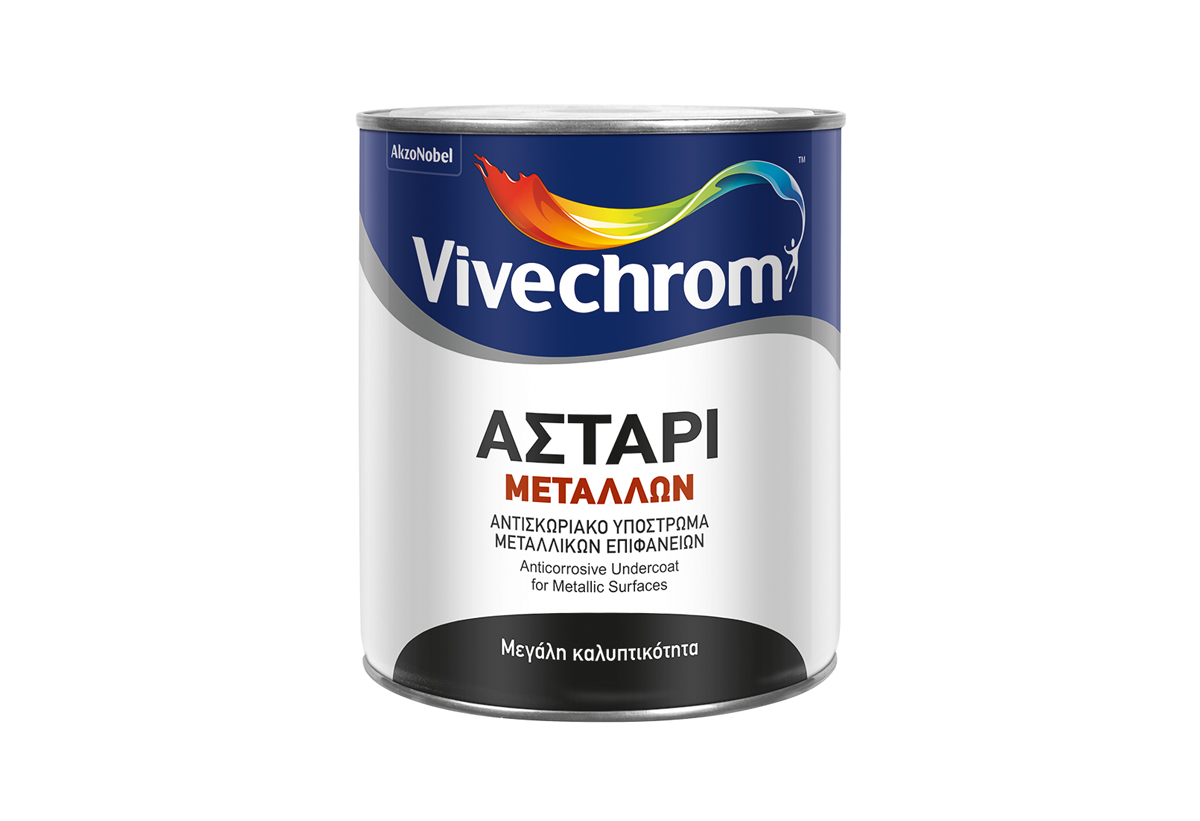 Το ΑΣΤΑΡΙ ΜΕΤΑΛΛΩΝ είναι υψηλής ποιότητας ταχυστέγνωτο υπόστρωμα βερνικοχρωμάτων κατάλληλο για μεταλλικές επιφάνειες. Δουλεύεται μαλακά, έχει μεγάλη πρόσφυση και καλυπτικότητα και τρίβεται εύκολα. Διατίθεται σε λευκό και γκρί-καφέ