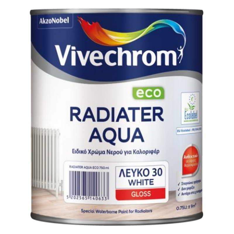 Το RADIATER AQUA ECO είναι ειδικό χρώμα νερού για καλοριφέρ, με κορυφαίες πρώτες ύλες νέας τεχνολογίας. Είναι πιστοποιημένο οικολογικό χρώμα από την Ευρωπαϊκή Ένωση. Παρουσιάζει μεγάλη αντοχή στη θερμοκρασία των καλοριφέρ και διατηρεί την γυαλάδα του και τη λευκότητά του για μεγάλο χρονικό διάστημα. Έχει εξαιρετική πρόσφυση και καλυπτικότητα και είναι κατάλληλο για την επαναβαφή παλαιών βερνικοχρωμάτων διαλύτου. Έχει μεγάλη ελαστικότητα και σκληρότητα και αντέχει στα χτυπήματα. Δουλεύεται εύκολα, απλώνει θαυμάσια, στεγνώνει γρήγορα και δεν μυρίζει.